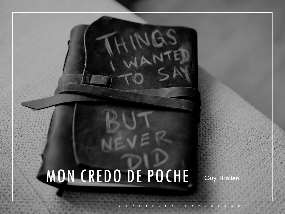 Moi aussi j’ai mon credo de poche. Mais n’allez pas le répéter aux vents bavards et à la foule qui passe, on vous rirait au nez.