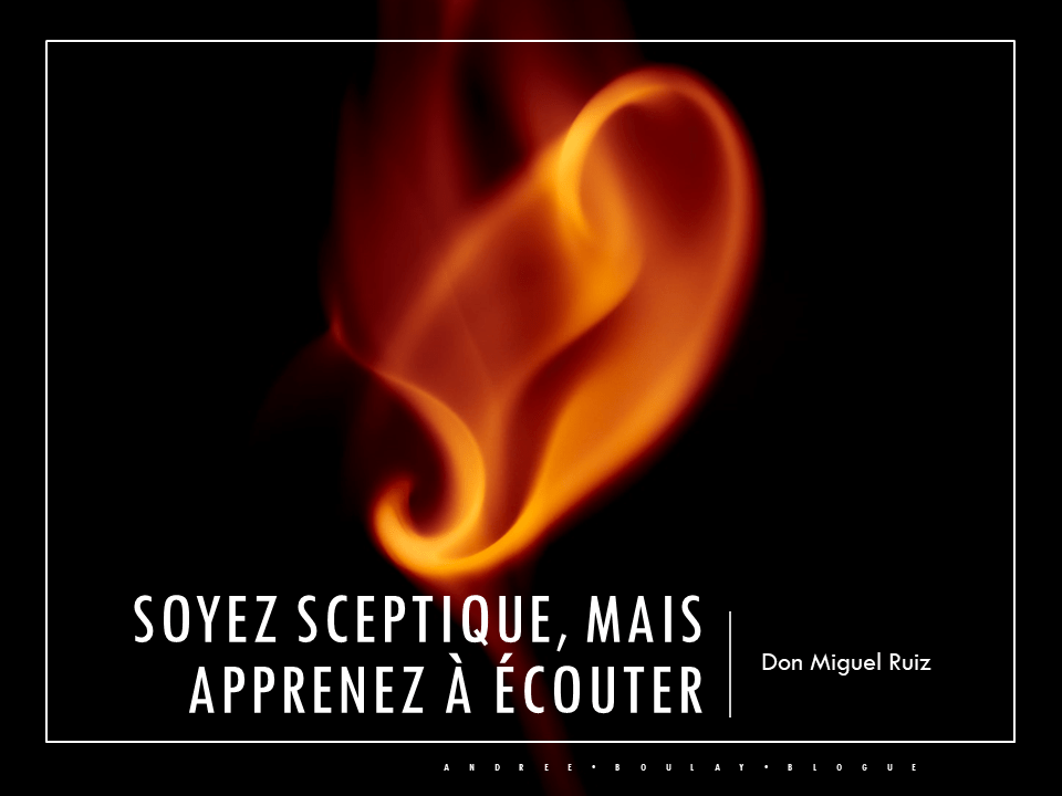 Ne vous croyez pas vous-même, ni personne d’autre. Utilisez la force du doute pour remettre en question tout ce que vous entendez: est-ce que c’est « vraiment » la vérité? Écoutez l’intention qui sous-tend les mots et comprenez le véritable message.