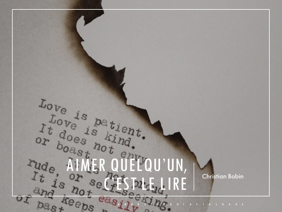 Aimer quelqu’un, c’est le lire. C’est savoir lire toutes les phrases qui sont dans le coeur de l’autre, et en lisant le délivrer. C’est déplier son coeur comme un parchemin et le lire à haute voix, comme si chacun était à lui-même un livre écrit dans une langue étrangère.