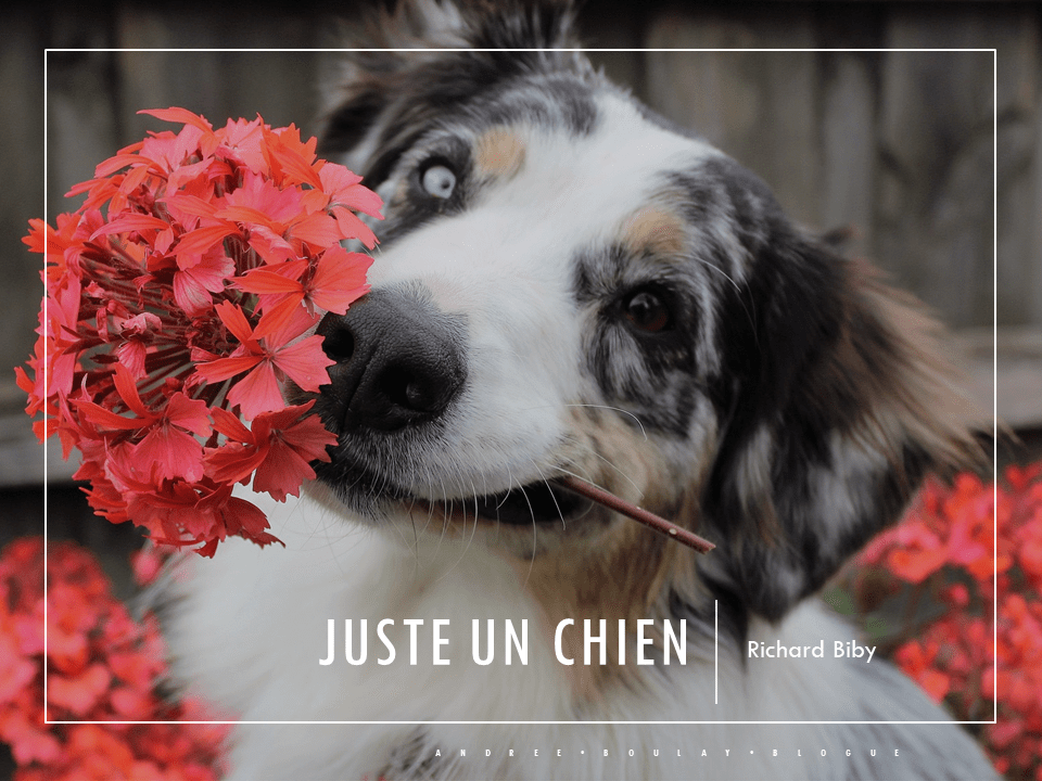 « Juste un chien » apporte dans ma vie l’essence même de l’amitié, de la confiance et de la pure joie de vivre. « Juste un chien » fait ressortir la compassion et la patience qui font de moi une meilleure personne. Grâce à « juste un chien », je me lèverai tôt, je ferai de longues promenades et je regarderai l’avenir avec optimisme.