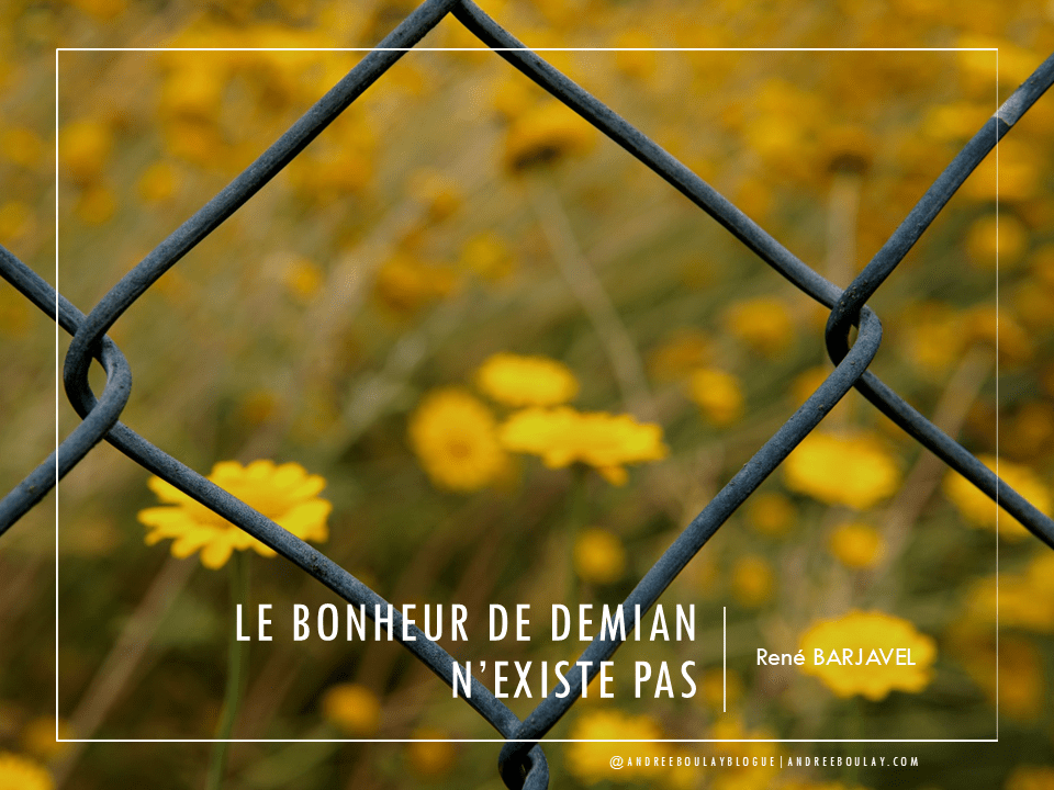 Et chaque individu croit qu’il sera heureux demain, s’il est plus riche, plus considéré, plus aimé, s’il change de partenaire sexuel, de voiture, de cravate ou de soutien-gorge. Chacun, chacune attend de l’avenir des conditions meilleures, qui lui permettront, enfin, d’atteindre le bonheur. Cette conviction, cette attente, ou le combat que l’homme mène pour un bonheur futur, l’empêchent d’être heureux aujourd’hui. Le bonheur de demain n’existe pas. Le bonheur, c’est tout de suite ou jamais. Ce n’est pas organiser, enrichir, dorer, capitonner la vie, mais savoir la goûter à tout instant.