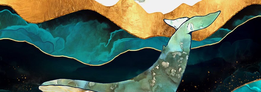 Le passage vers la cinquième grotte s'illumina et la Gardienne de la Sagesse y pénétra. Elle y vit gravée une baleine sur la paroi la plus éloignée. La Terre Mère lui parla ainsi: "Ceci est la Grotte de la direction du Haut, ma fille. Qu'as-tu découvert à propos de la sagesse qui réside là-Haut?"